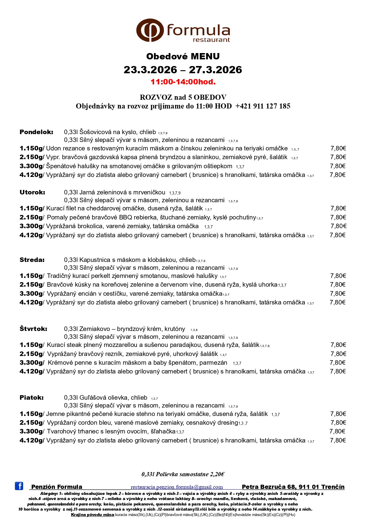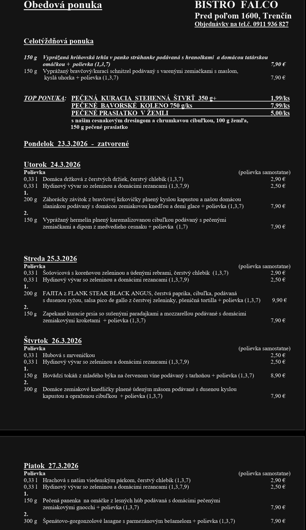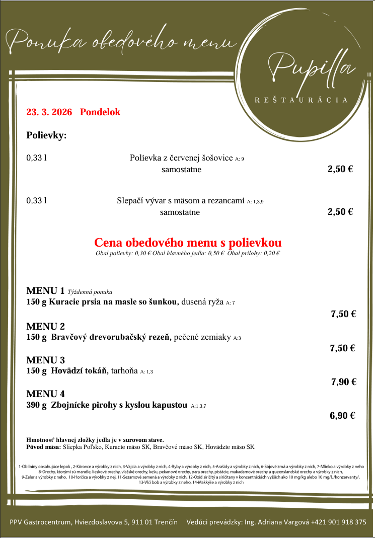 Kategórie: Reštaurácie , Donášky , Catering Zobraziť Dnešné menu +421 915 992 645