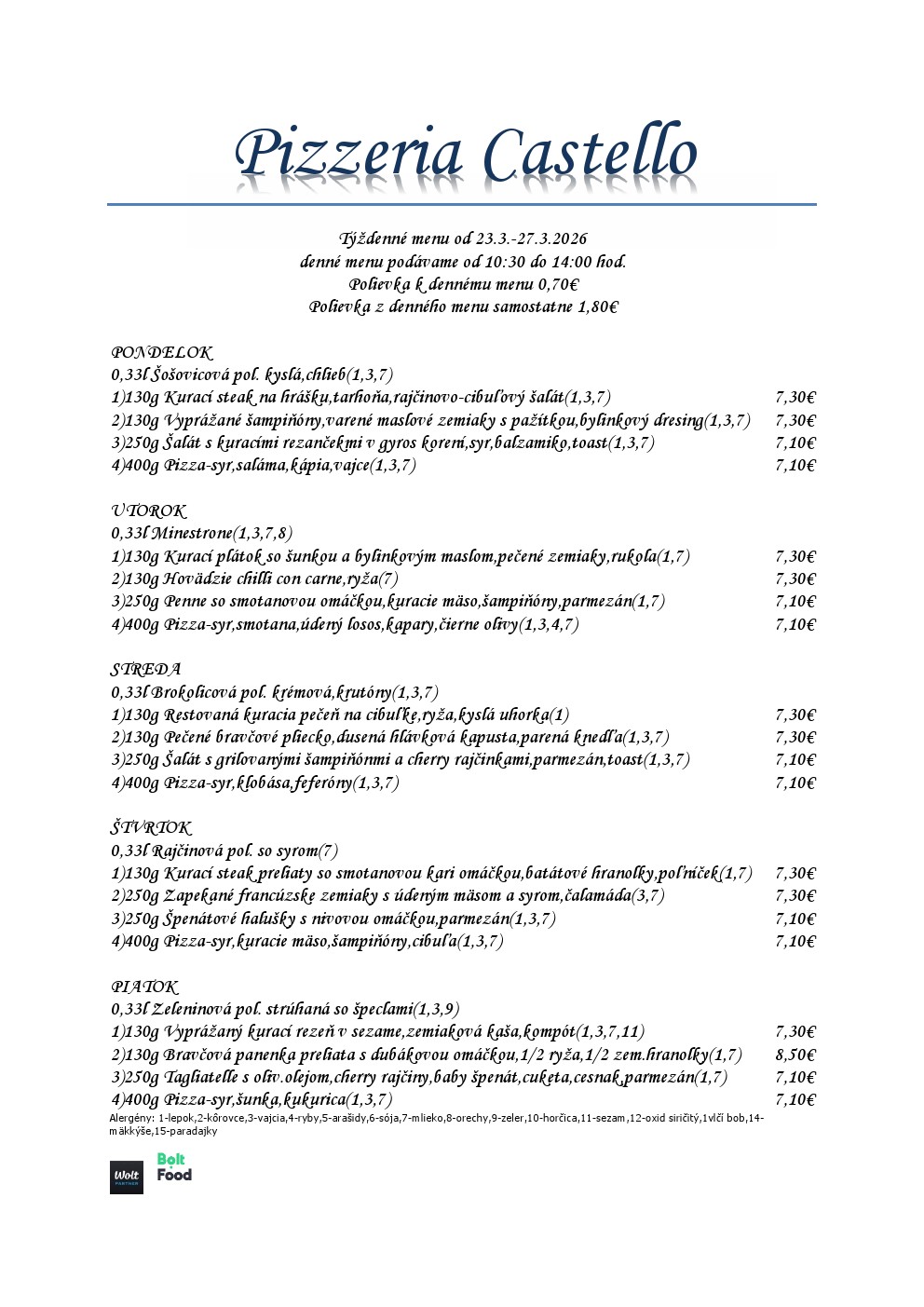 Kategórie: Reštaurácie , Pizzerie , Donášky , Catering Zobraziť Dnešné menu +421 948 311 178 ROZVOZ