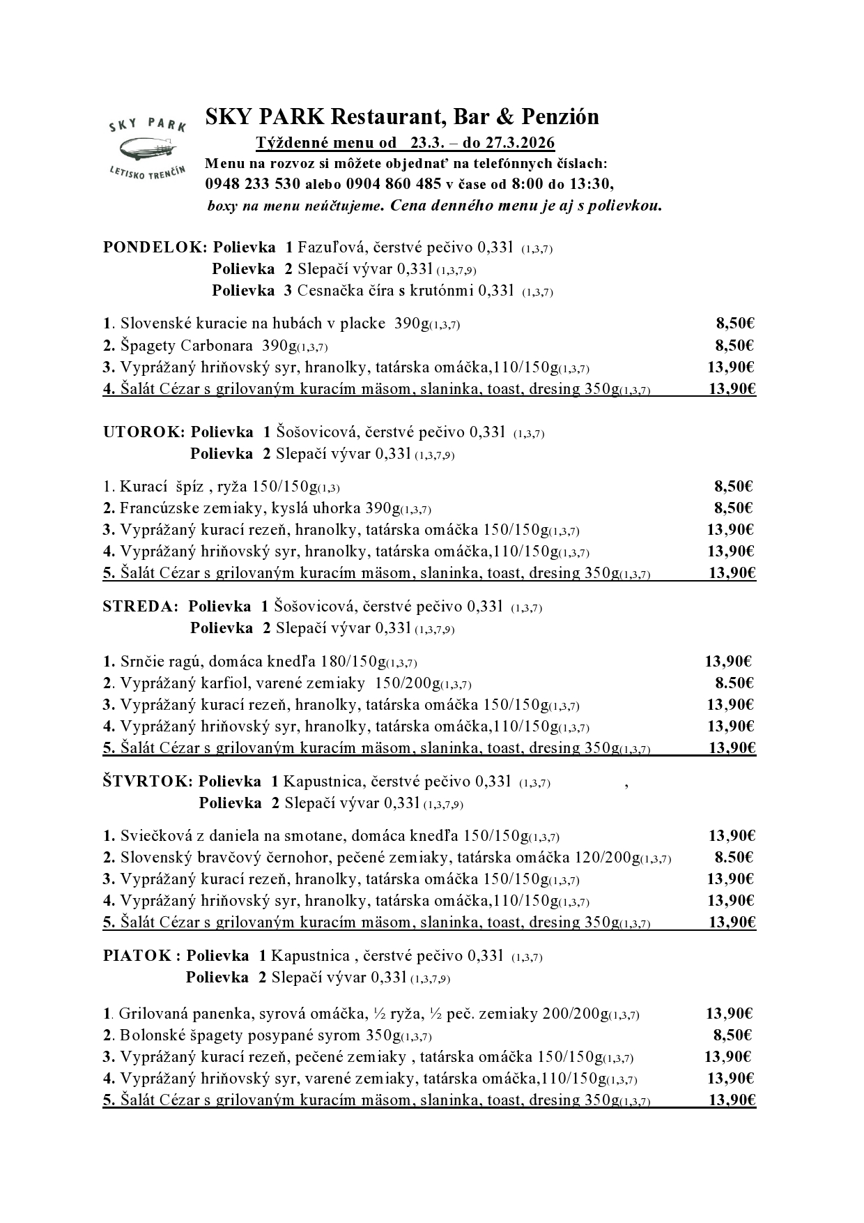 SKY PARK Restaurant Bar & Penzión