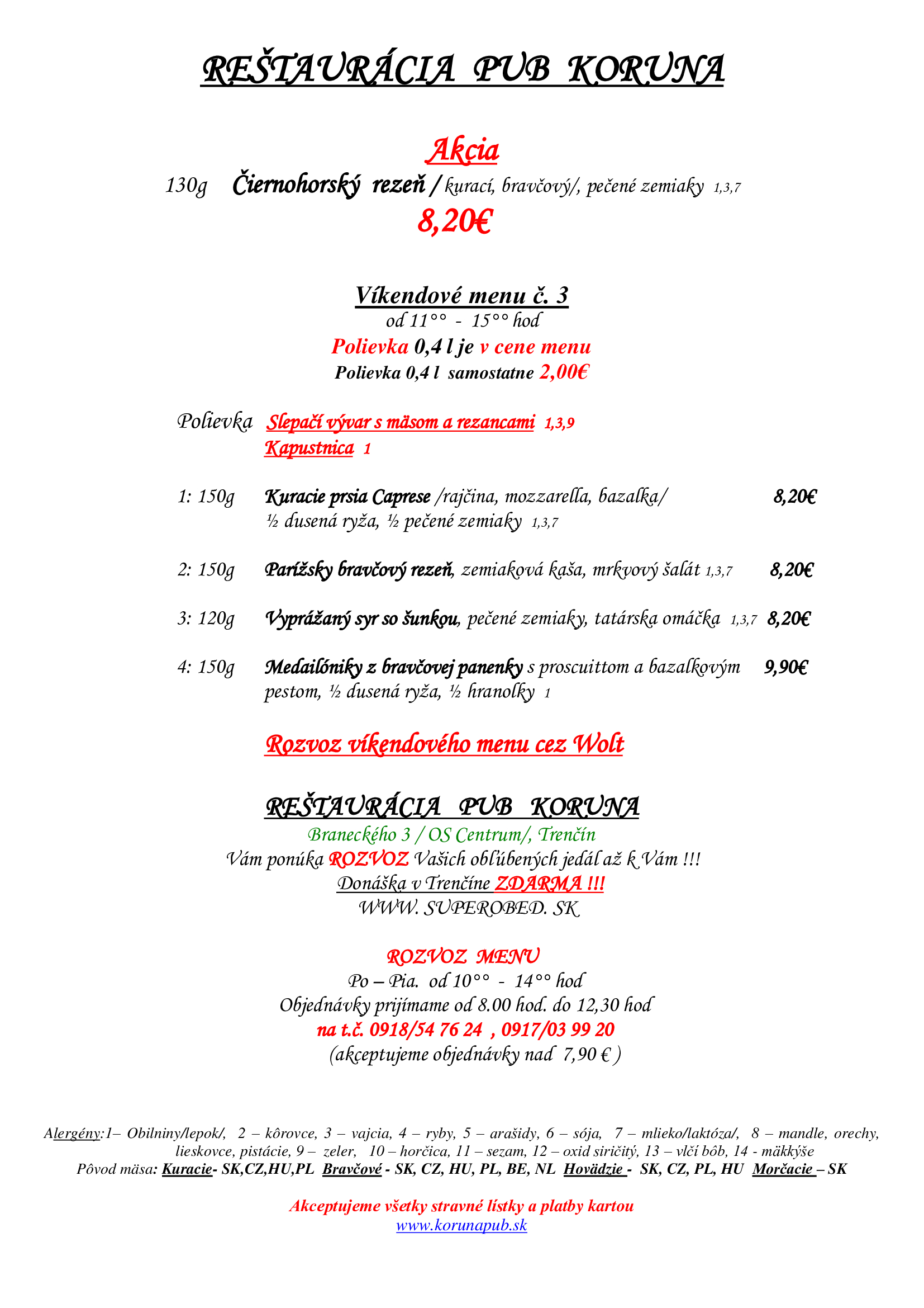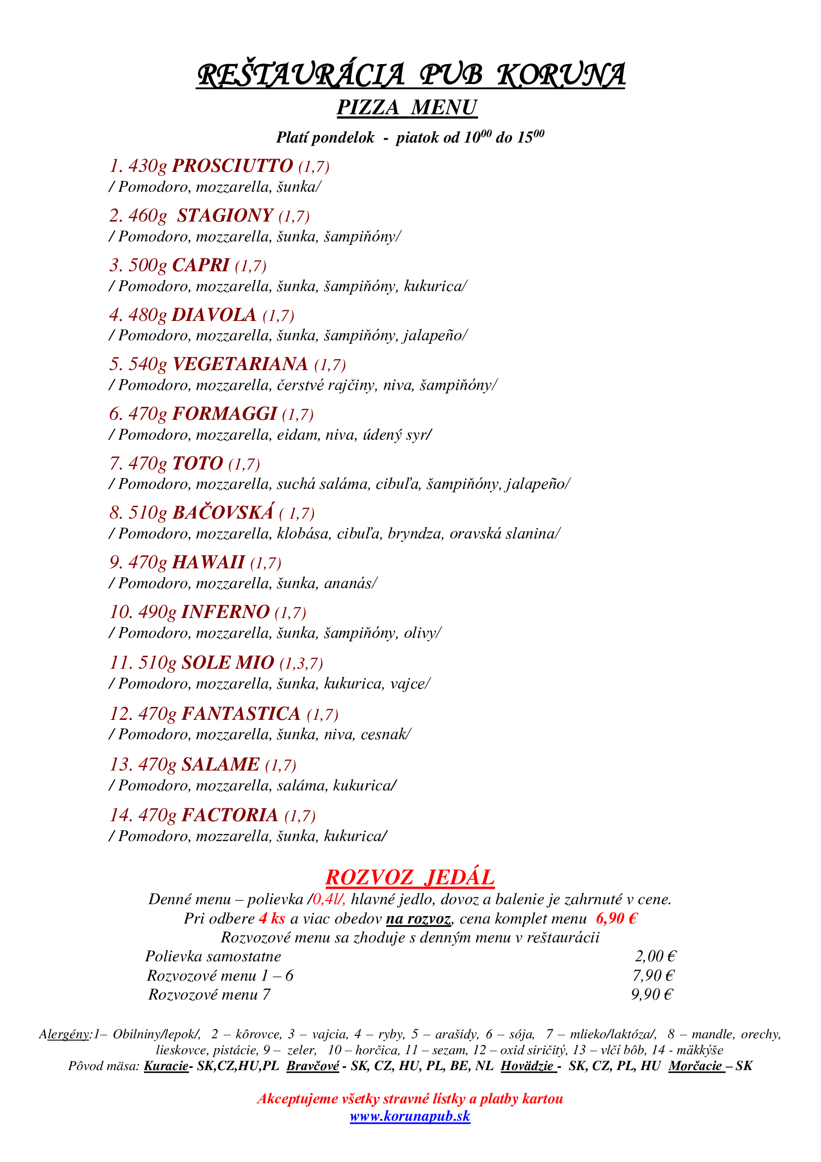 Každý deň pre vás pripravujeme denné menu zo 7 druhov jedál, aby si u nás vybral naozaj každý.